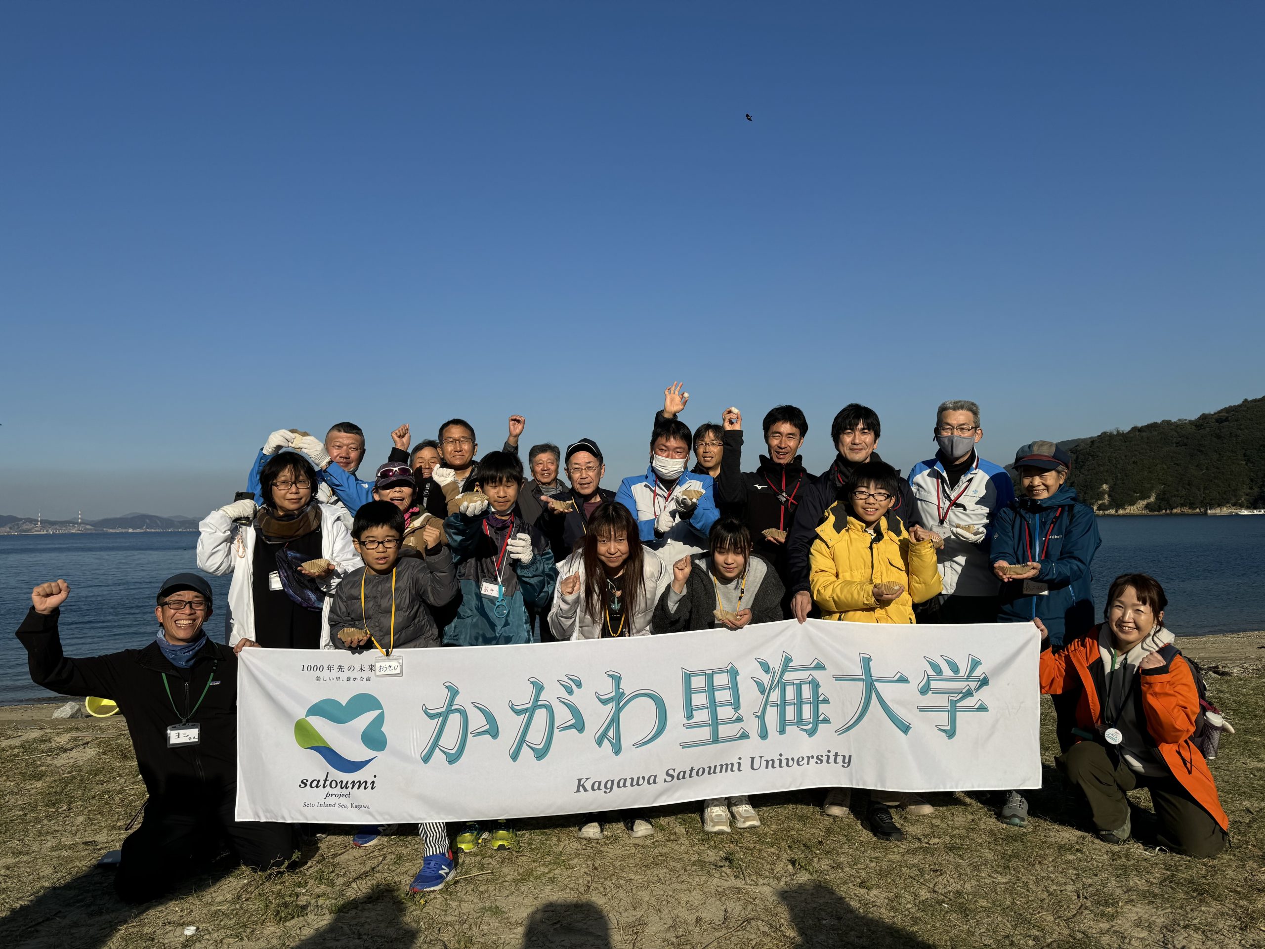 11月29日(土)、交流の里おうごしにて坂出市と共催で、「“海のゆりかご”アマモ場再生講座~アマモの種子選別・種まき体験編~」を開催し、大人と子ども合わせて16名の方にご参加いただきました。本講座では、6月に開催したアマモの種取り体験編で採取し、王越まちづくりの会の皆様に保管していただいていたアマモ花枝から種を選別し、海にまきました。