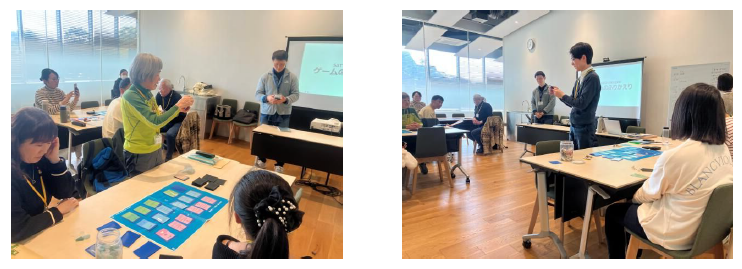 その後、受講者はゲームで使用するカードの種類や進行方法を確認し、実際にゲームを体験しました。